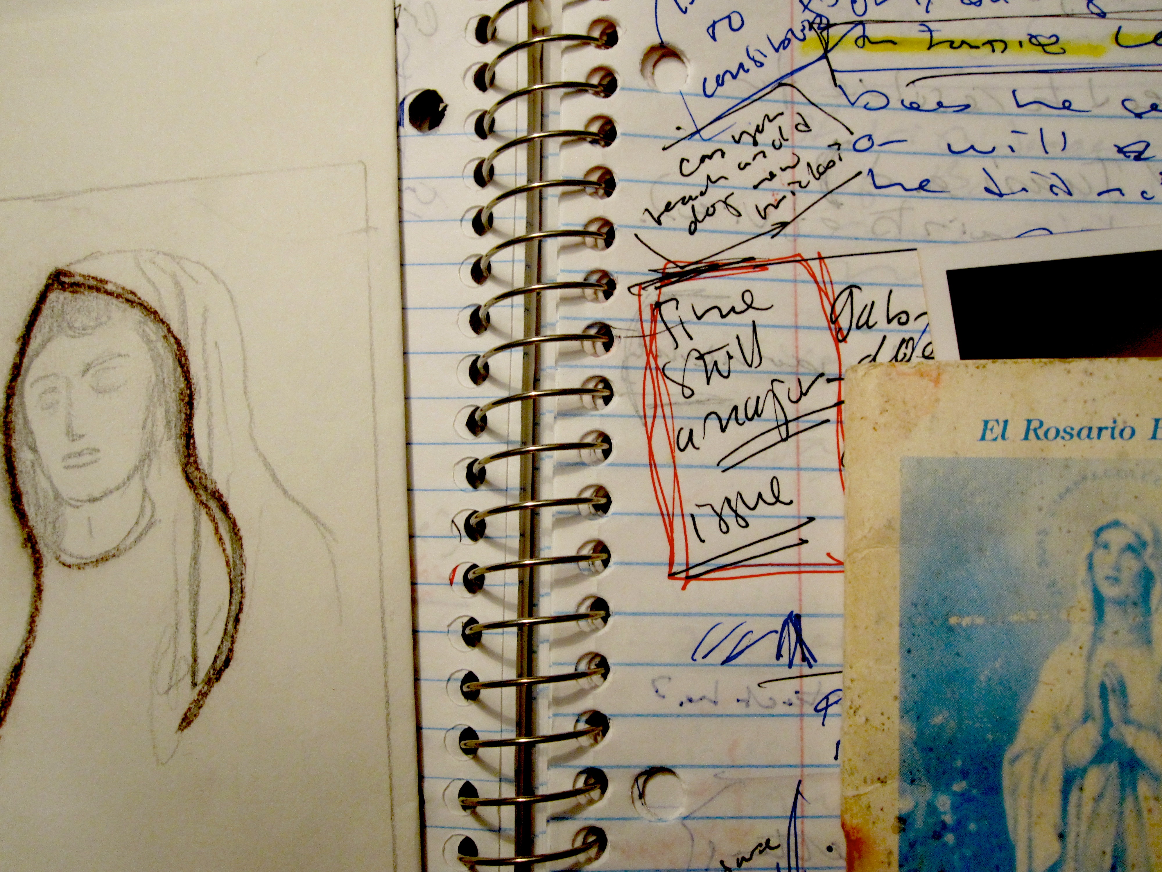 I am fascinated by the notebooks of writers and artists–the doodles, bits of research and notes to self, the handwriting, the bad early drafts. There is something necessary in the sheer chaos of a notebook or a box of clippings, scraps, and other ephemera. So much goes into the making of a book, a story, a single poem.